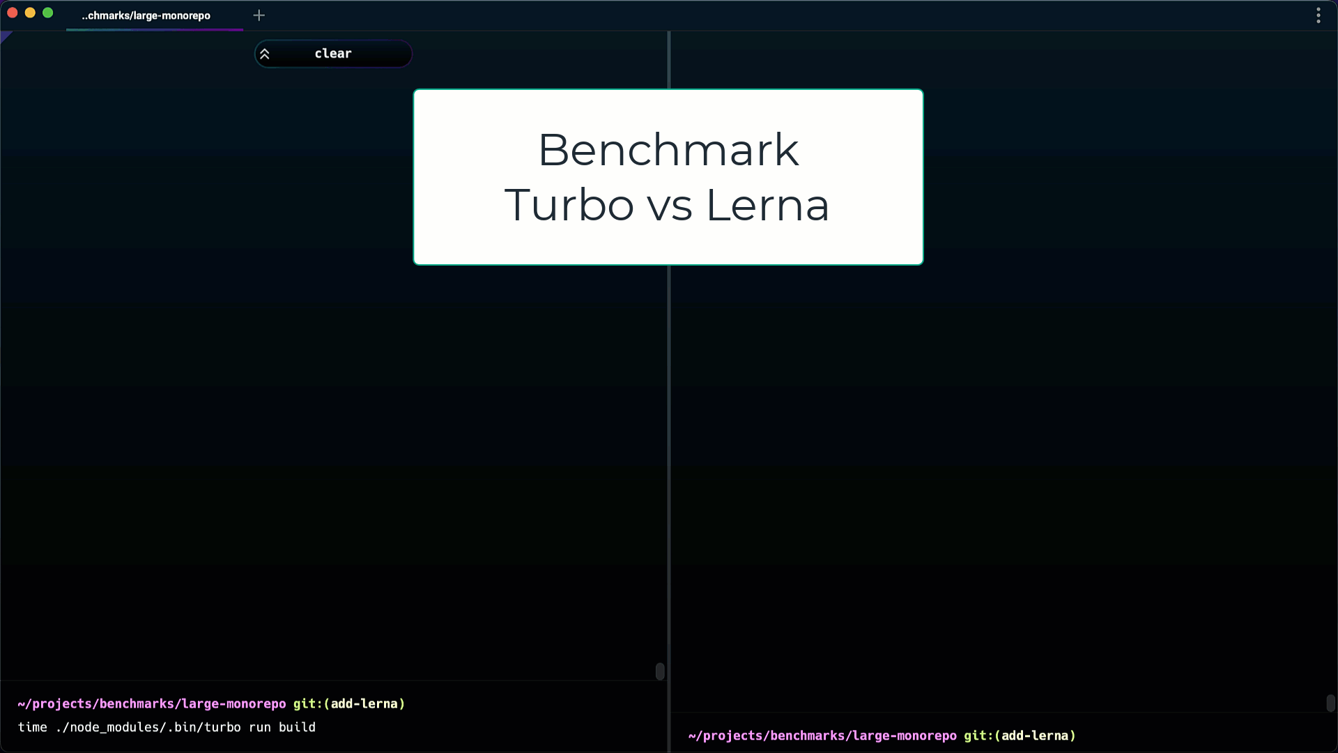 Here's a gif of running the benchmark of Lerna+Nx and Turborepo: