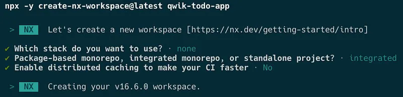 Let's start by setting up our development environment. We'll create an Nx workspace and integrate Qwik into it. Begin by generating an empty integrated workspace: