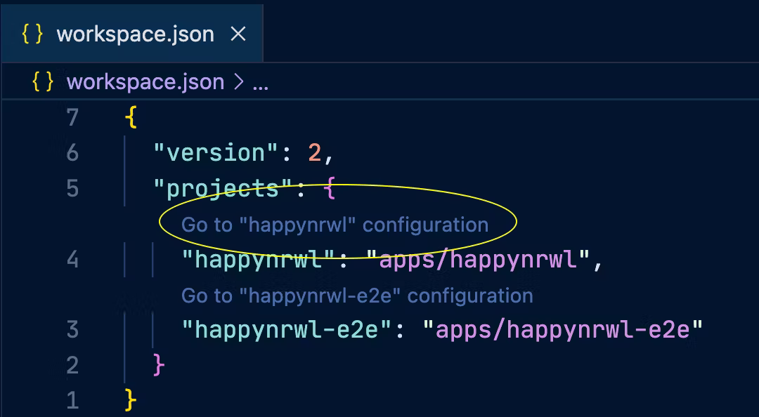 Besides running generators, Nx Console also adds VSCode Code Lens abilities to the configuration files that help you navigate more quickly across the workspace. This is particularly useful if you happen to add more apps and libraries to the workspace at some point.